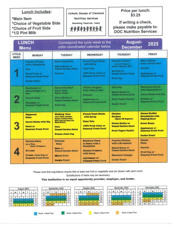 Click to download the August - December 2025 Lunch Order Form